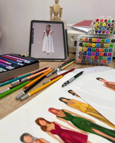 اكتشف إبداعاتنا في مجال تعليم تصميم الأزياء الراقية وتدريب الخياطة الرفيعة